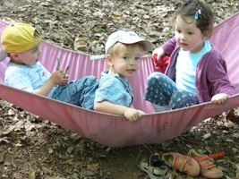 - es im Waldkindergarten kein vorgefertigtes Spielzeug gibt. Naturmaterialien wie Äste, Sand und Blätter, sowie die je nach der Jahreszeit ständig wechselnde Umgebung regen die Phantasie und Kreativität an.