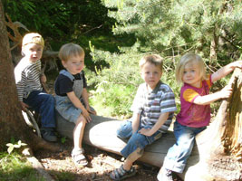 - der Wald kein hermetisch abgeschlossener Raum ist. Nicht eingeengt durch Wände lernen die Kinder einerseits mit ihren Aggressionen umzugehen. Andererseits passieren im Wald unplanbare Geschehnisse, auf die die Kinder sich einlassen müssen. Dadurch lernen sie Ängste überwinden, Risiken einzuschätzen, entwickeln Mut und tragen Verantwortung.